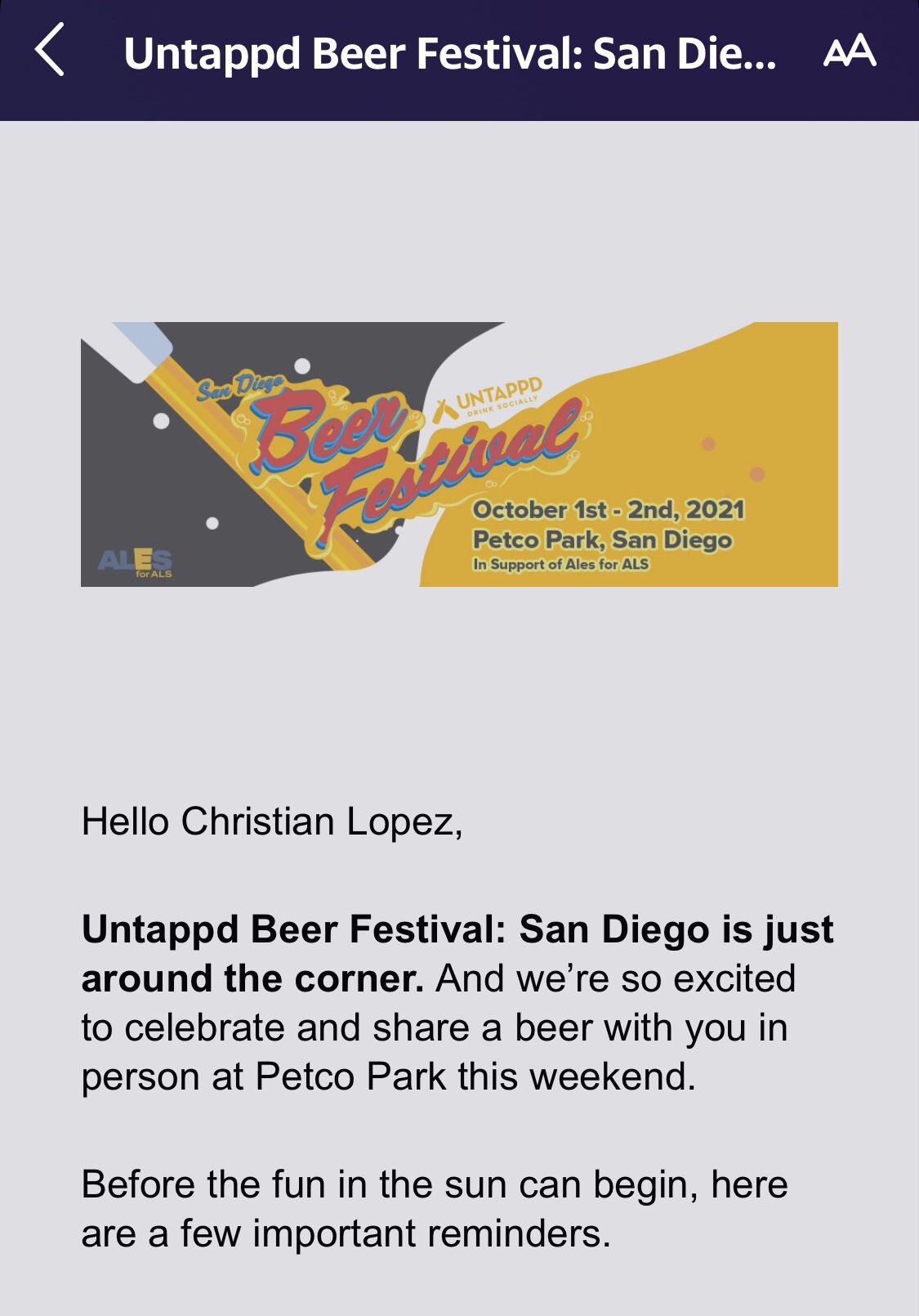 I have one GA untappd beer festival ticket for San Diego 10/2 that I am looking to sell. Entrance time is at 6:30 and location is Petco park.