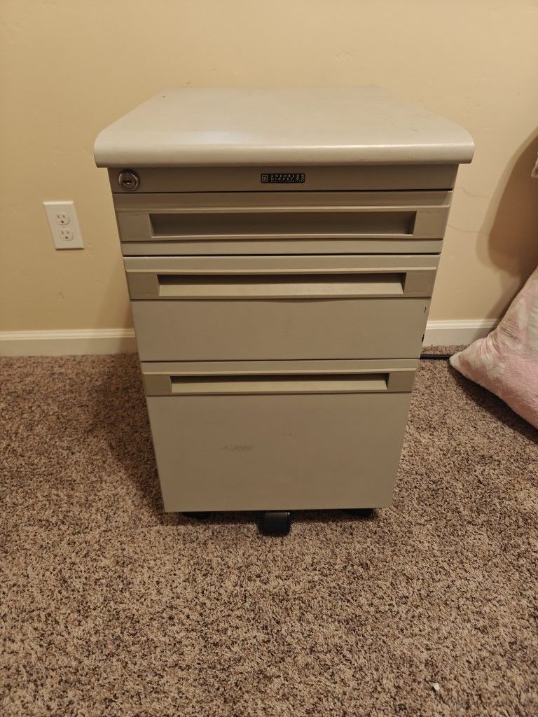 Rolling metal 3 drawer filing cabinet. Lots of life left. Cash only, pick up only FCFS.