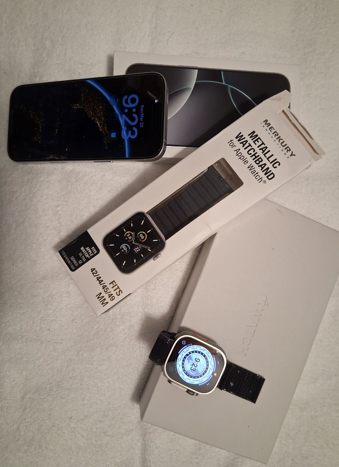 Apple Bundle for Sale – Great Deal! Selling an Apple iPhone and Apple Watch Ultra 2 (49mm Pro Max) in excellent, like-new condition. I only used them a few times—they’re just not for me. ✔️ Condition: Like new ✔️ Screen protector: Needs replacement (glass cover is cracked, but the device itself is NOT damaged) ✔️ Fully functional, no issues 🚫 No bargaining 🚫 No trades 🚫 Price is firm If you need more information, please message me. Serious inquiries only. No holds