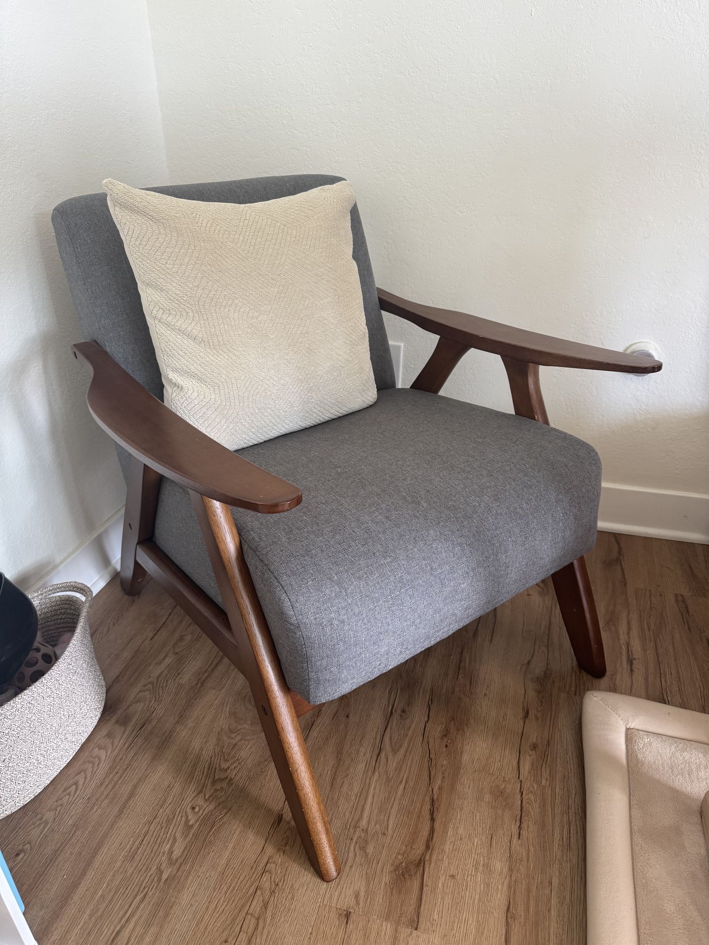 Selling 2 chairs $330 for both. Mid Century Modern Accent Chair with Solid Wood Frame in Walnut Finish Perfect condition! No animals on or around the furniture the cushions are in perfect condition.