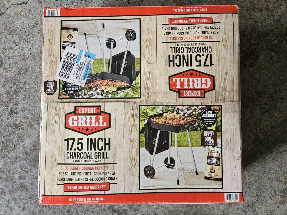 Charcoal Grill. Used in our old residence one season, then boxed it up and moved. Works well. Cash only, please. Message to arrange pick up.