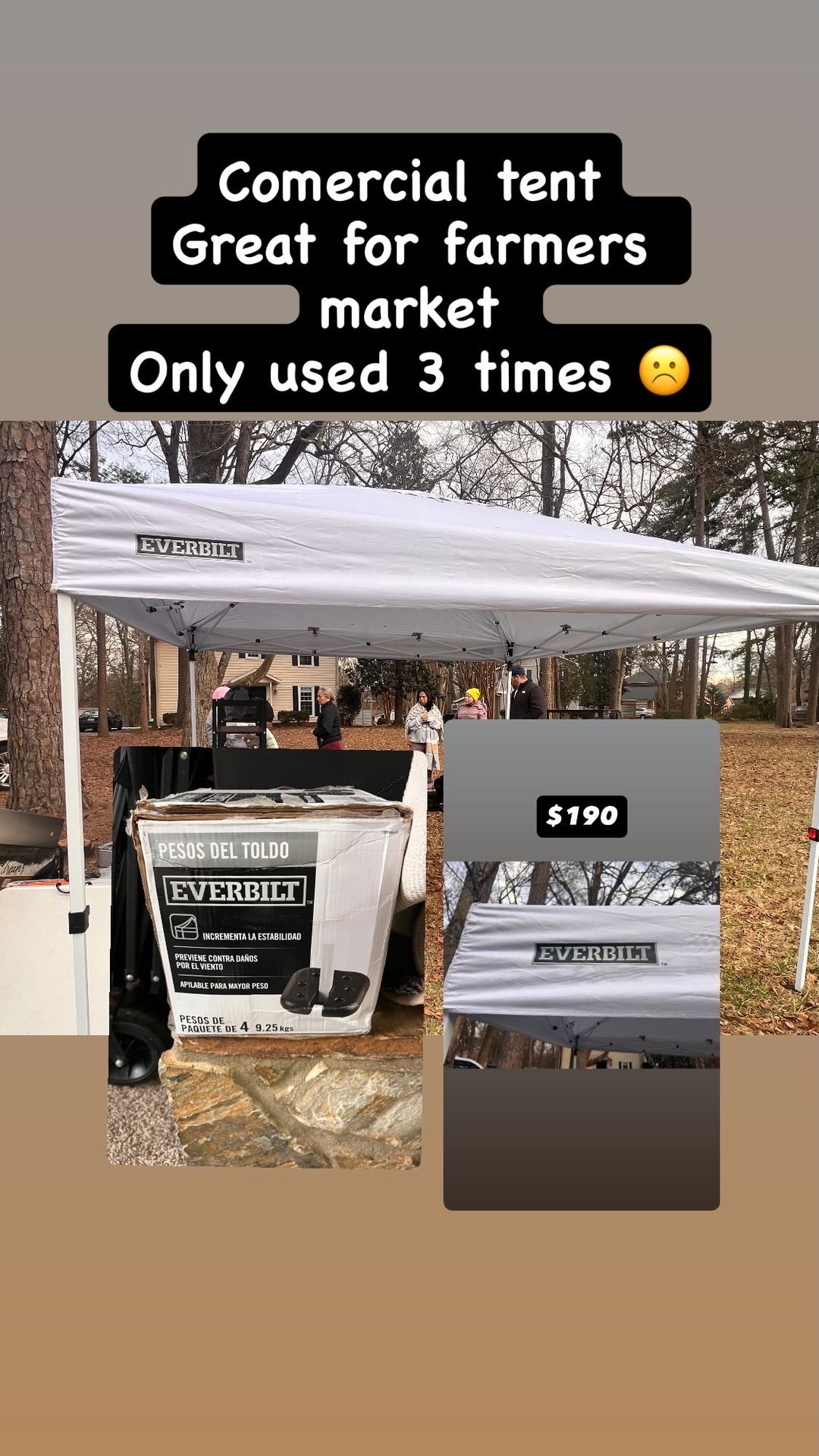 This is good tent 10x10 great for farmers market, only I used 3 time