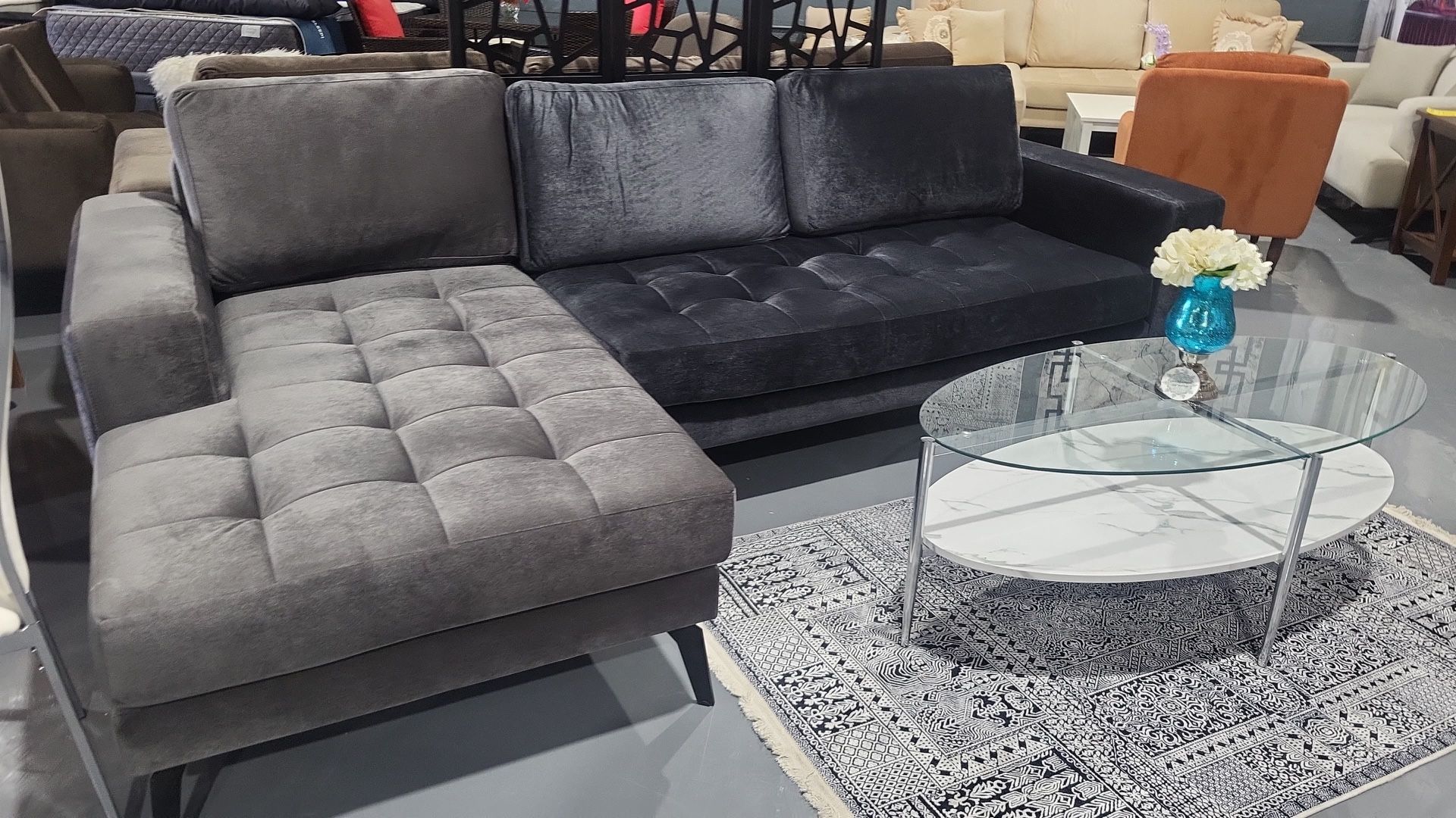 SECTIONAL 2 DIFFERENT GRAY MIX VELVET 115X60