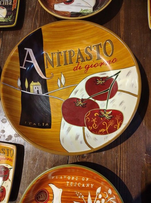 Great set... Brand new set. 4 appetizer plates, 4 pasta bowls, 1 large serving bowl. 1 bowl costs $30 alone