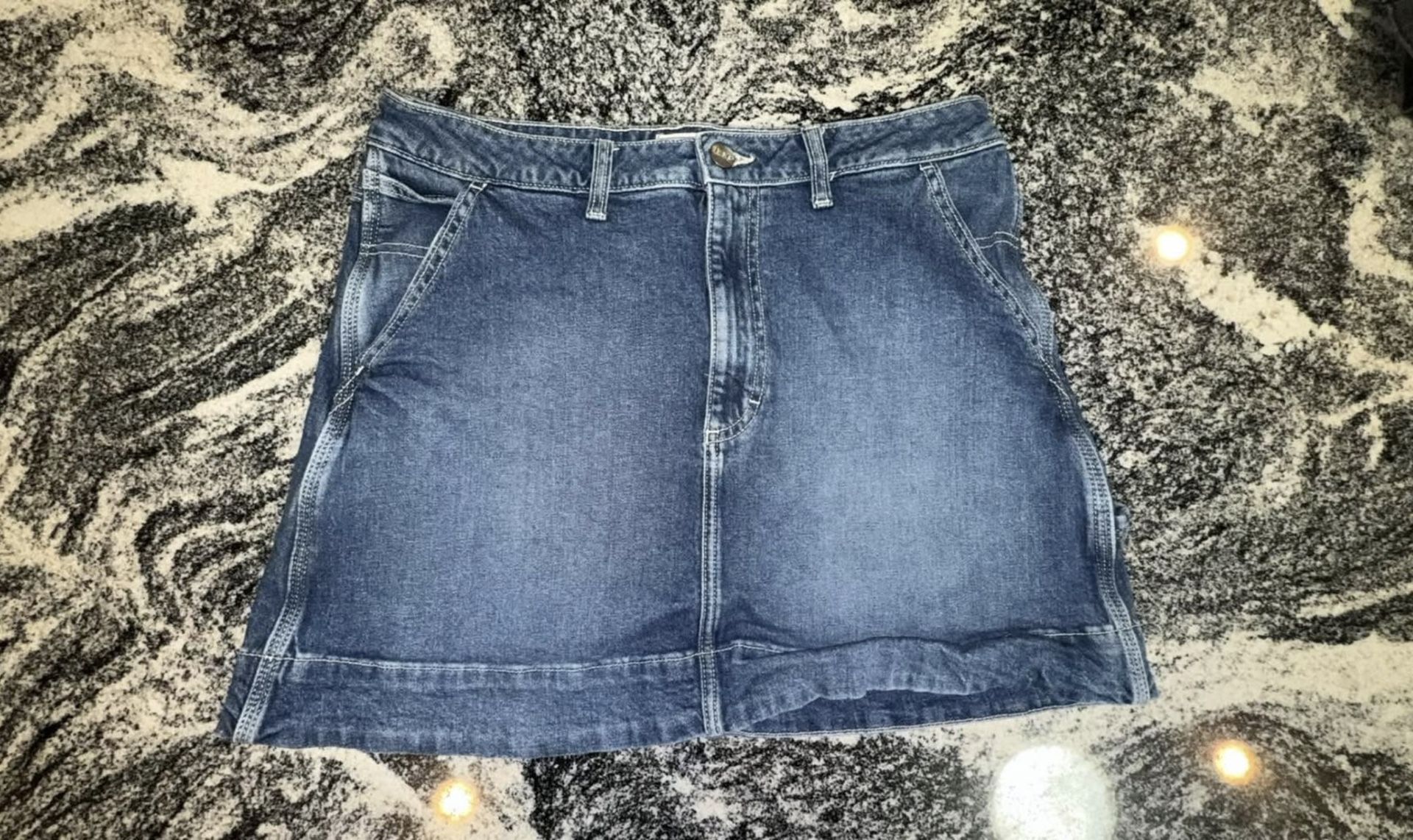 Crafted from durable blue denim with a flattering medium wash, this skirt offers both comfort and classic style. $5 - cash only Cross streets: 99th Ave & Grand