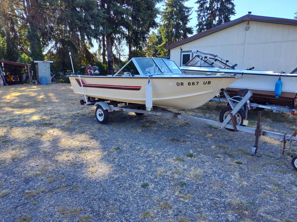 1983 15ft aluminum Star Craft. New Floor, Carpet, Seats, and Transom. 1983 Shore Lander galvanized trailer bearings good with spare. 75hp Johnson Stinger 2 stroke runs strong and pees well. Titles for both