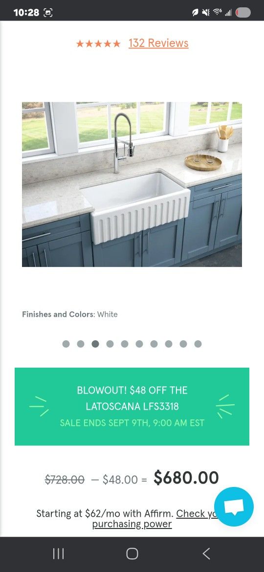 Material: Constructed from fireclay, a type of ceramic known for its strength and durability. Design: It features a reversible design, with a flat front on one side and a fluted, decorative pattern on the other. Surface: Finished with a glossy, non-porous glaze that resists scratching and staining. Availability: A new model that is available for purchase from sellers like those on Facebook Marketplace. Pick up only..