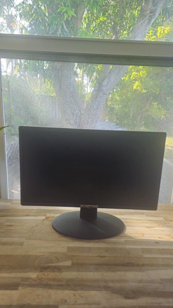 Sceptre 20" LED monitor, gently used and works perfectly. Ideal for home office, gaming, or dual monitor setups. Slim design with a sturdy base.