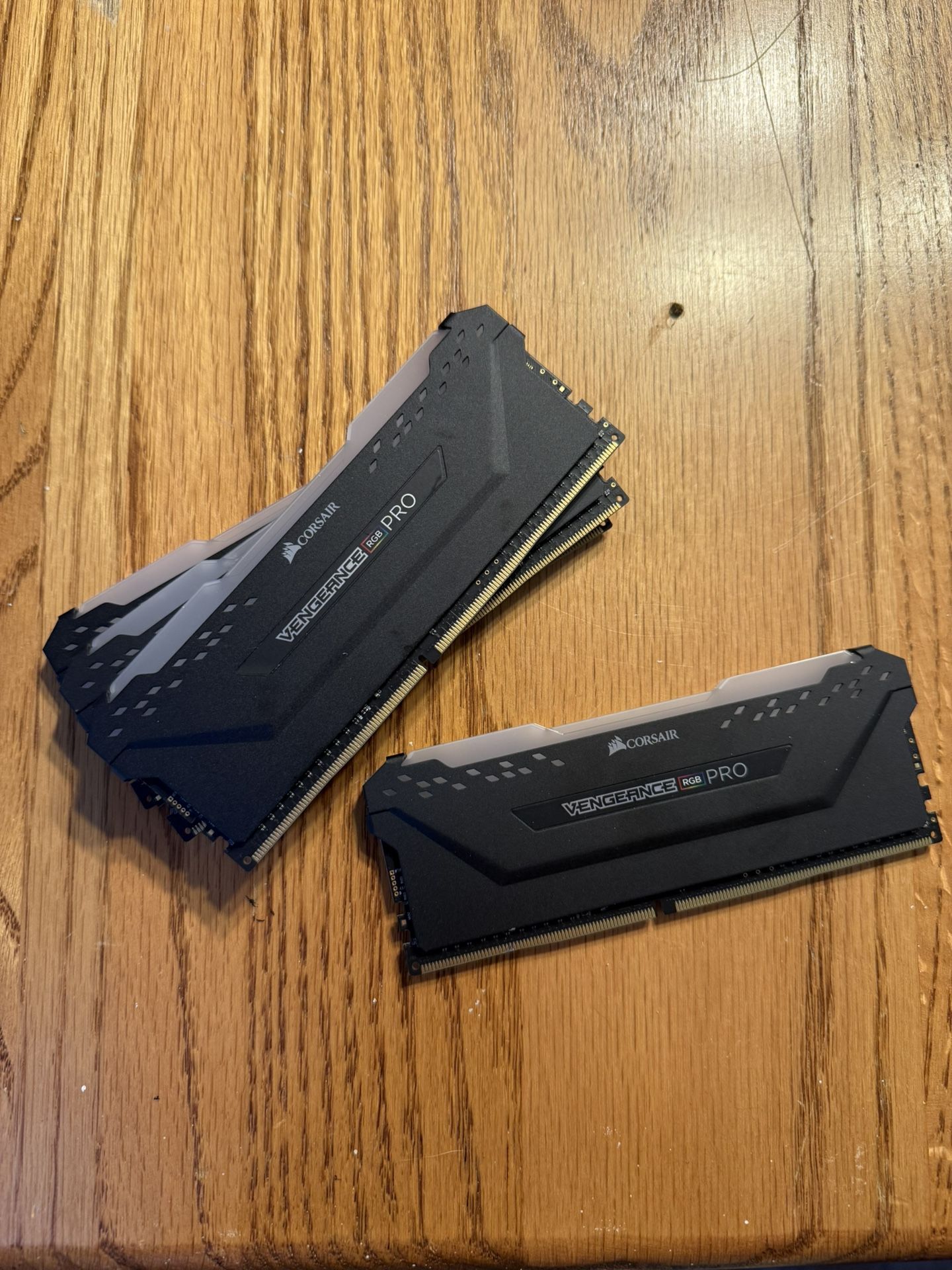 Two sticks of 16 GB DDR4 RAM. Vengeance pro RGB. I have 4 total, selling in pairs of two for $1150 each, or all four for $150. Retails for $155 a pair.