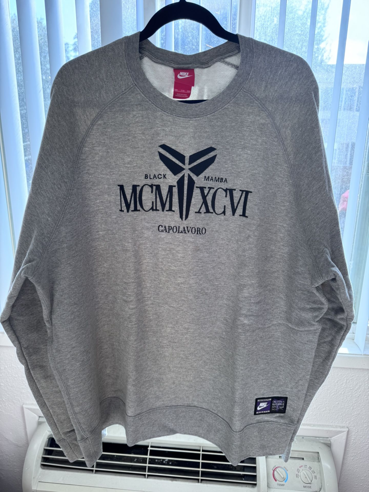 This is a brand new Kobe sweater/crewneck in a size XXL, the left sleeve also has a pocket on it. No tags but it has only been tried on and did not fit