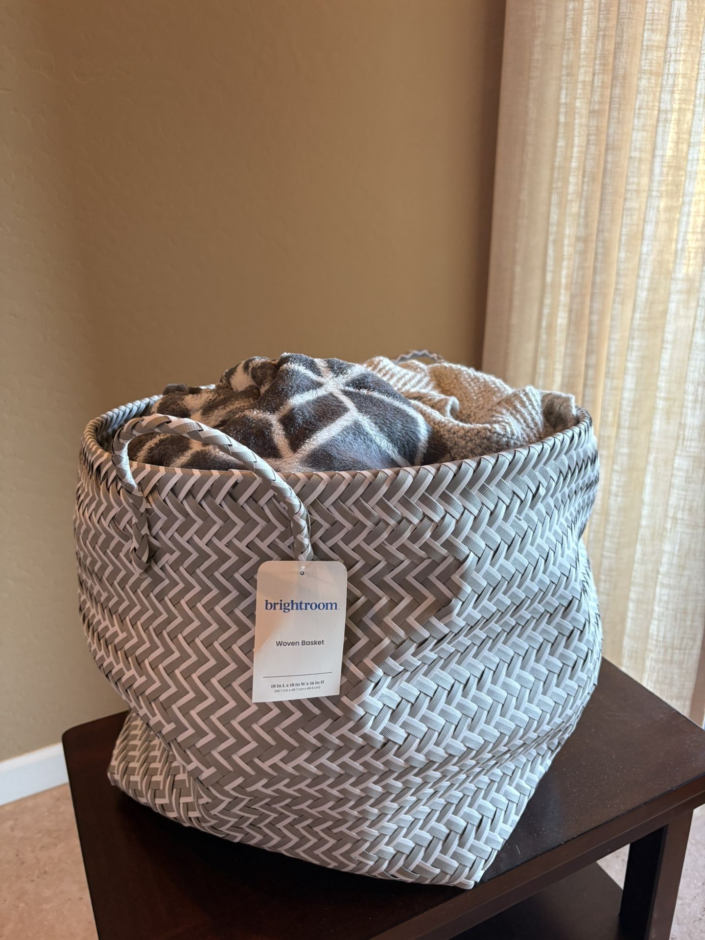 New storage basket Tag still attached Gray/white (Blankets not included)
