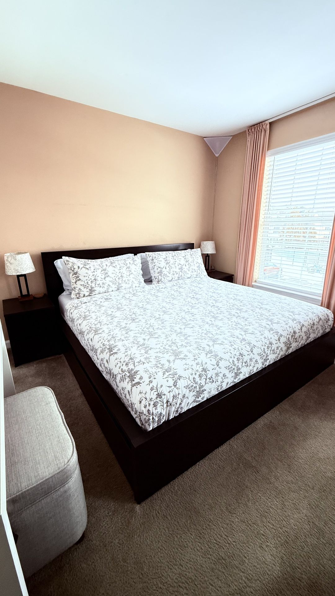 King bed frame, 2 night stand, 2 light, mattress, 2 storage drawer under the bed All ikea brand