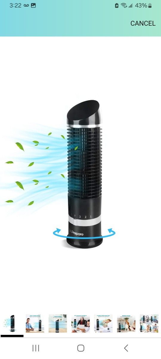 DR.PREPARE Oscillating Tower Fan, Desk Table Fan with 3 Speeds, Quiet Cooling, 60° Oscillation, 16 Inch Personal Small Bladeless for Bedroom Home Office Desktop New in box Retails $37