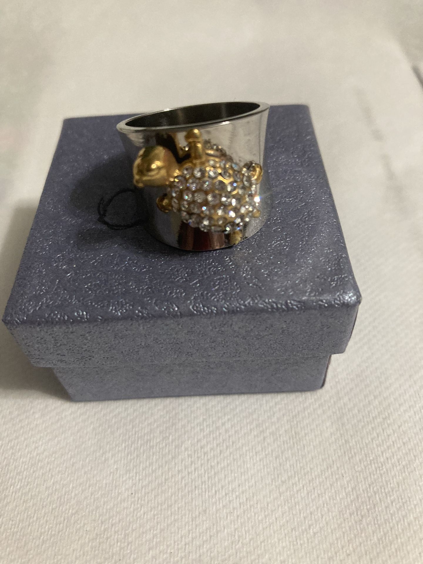 Pretty turtle ring size 9 stainless steel crystals and yellow headband feet