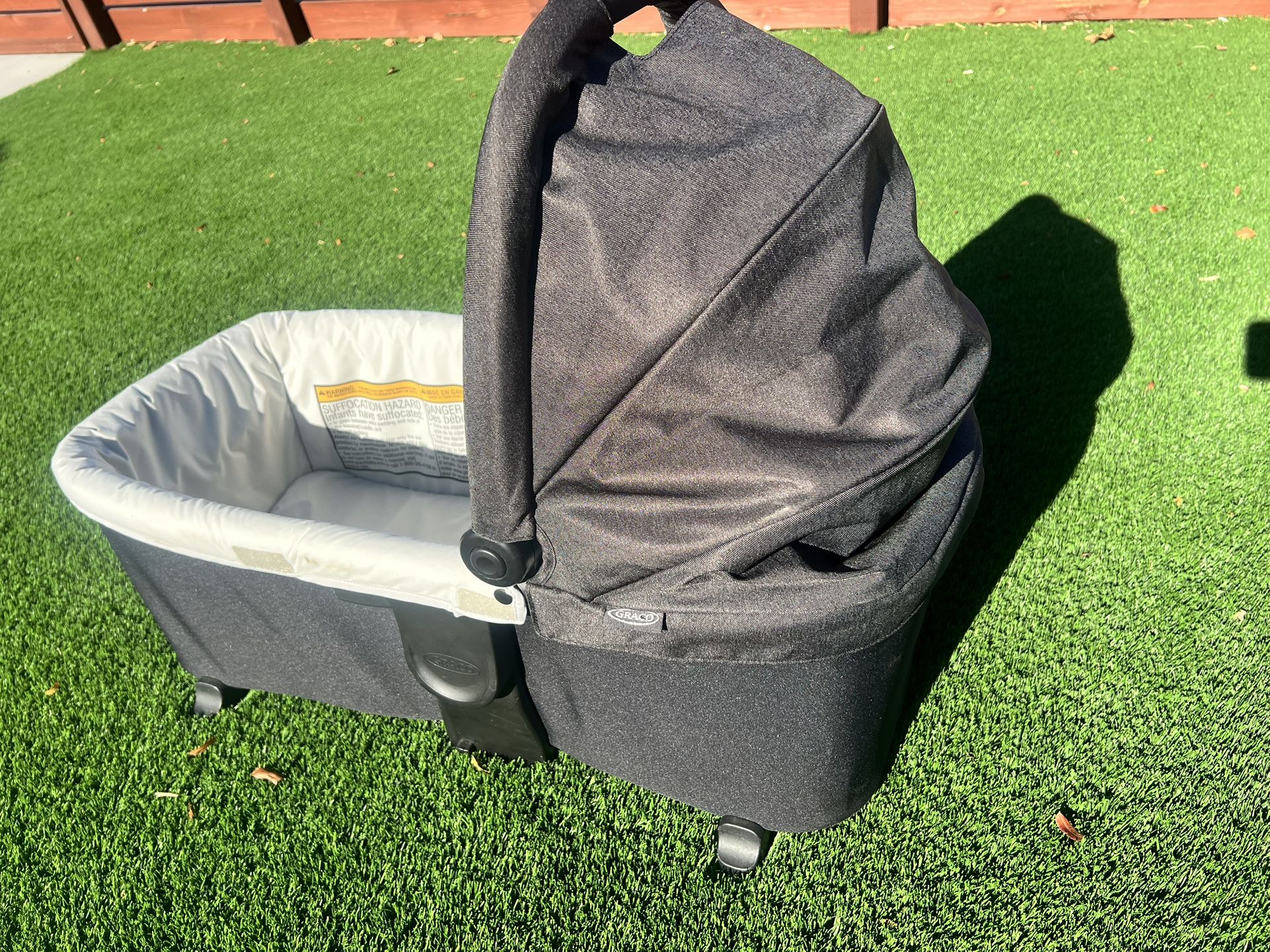 Used about 5 times. Works with the Graco Modes Premier. Perfect for bundling and taking your little one for a cozy walk! The Graco® Modes™ Carry Cot is a cozy bassinet option for your infant's stroller. It can be used with most Modes™ Strollers* or the Modes™ Carry Cot Stand (each sold separately). Or on its own as a safe resting spot for baby. It clicks directly to the Modes™ stroller frame or stand, so you can transfer baby seamlessly from stroller to stand. The reversible design means baby can face you or the world when used on the stroller. The comfortable mattress pad cradles and cushions baby and features a machine-washable cover for easy cleanup. The large canopy provides sun protection, while an all-weather boot adds further protection from sun and cold. The integrated carry handle makes for easy, one-hand transportation and the collapsible design means it's simple to store, too. *Not compatible with Modes™ 3 Lite, Modes™ Adventure Wagon, Modes™ Sport Click Connect or Modes™ Duo Strollers