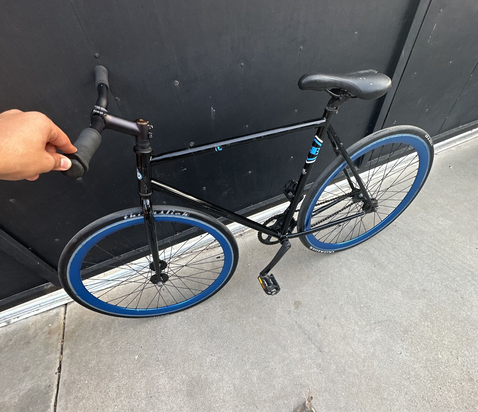 Black and blue good just needs tubes for the front and back tires chain is good and everything else is good asking for the low price and some scratches on the bike