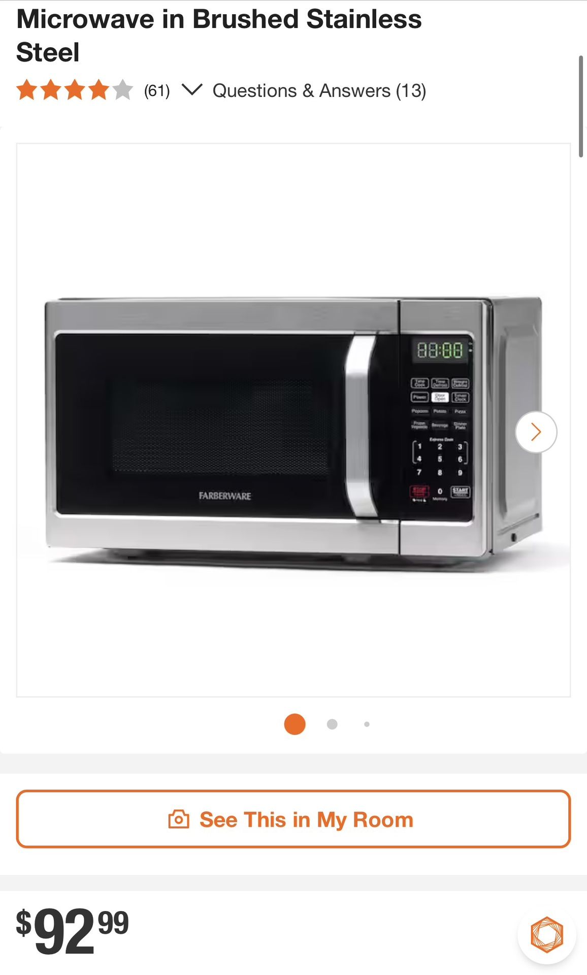 I have a Farberware microwave I originally bought two intended to use for my house and rv. Ended up using one for the rv and the other never touched since I upgraded to a far more expensive Samsung microwave . Never used , original package . Bought from Home Depot . Countertop microwave in brushed stainless steel (0.7 cu. Ft) 700 watts . Throw me an offer