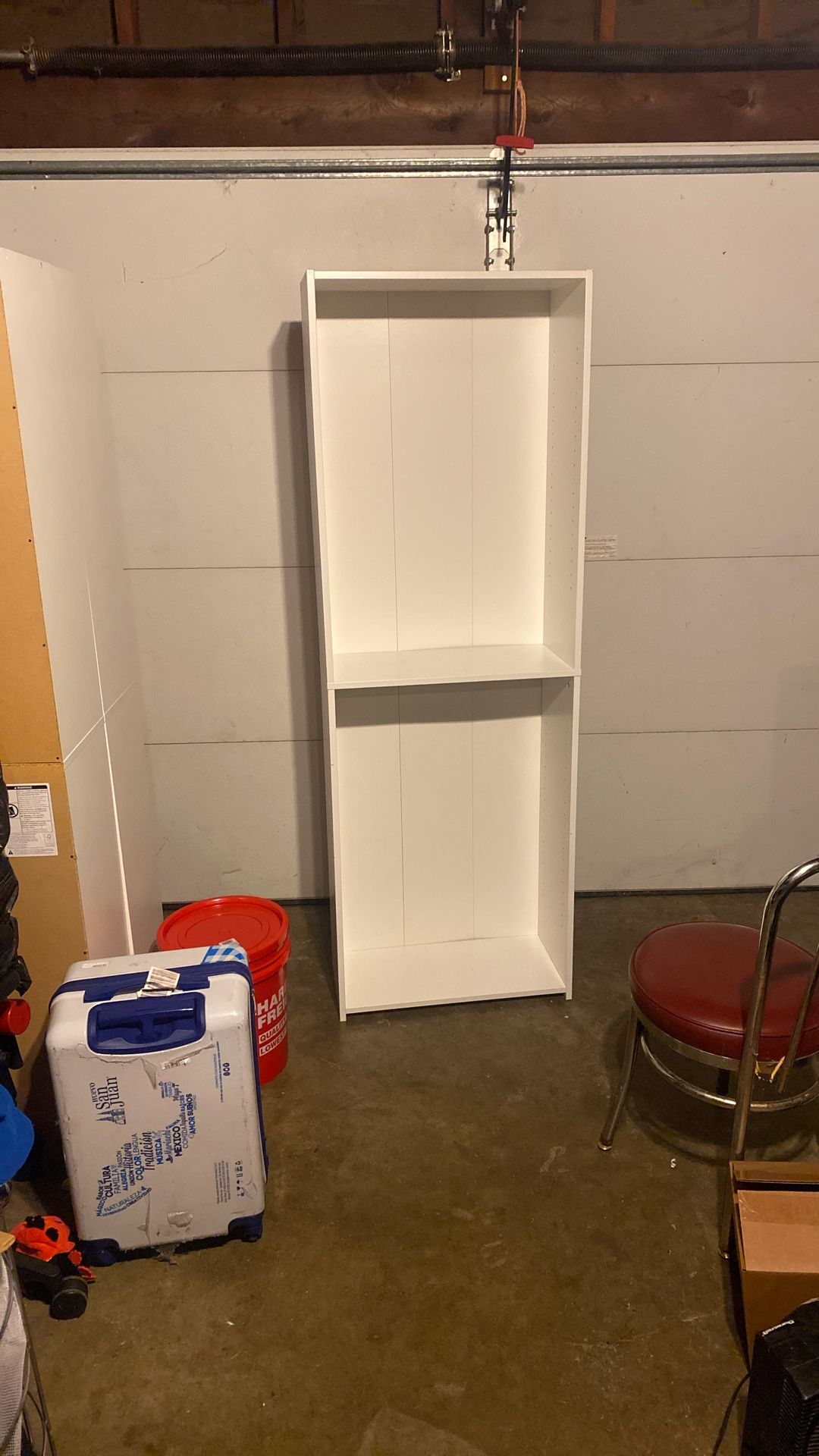 White 5 tier bookshelf Includes 3 adjustable shelfs I can drop it off for a fee, depending on how you’re located. If you come to pick it up, you can take it free Top part comes off to fit better in a car
