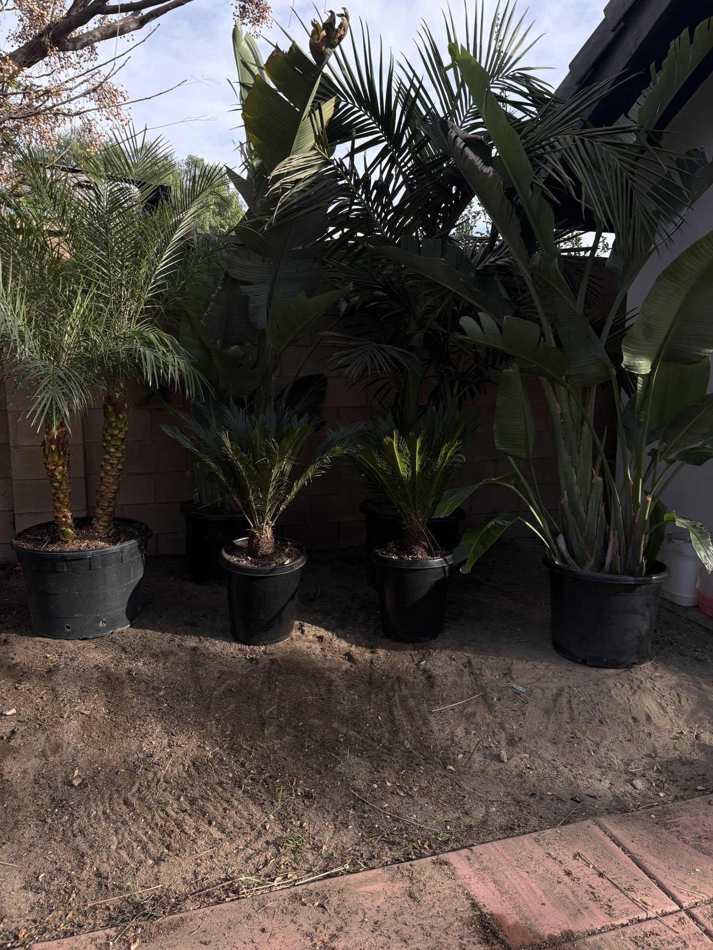 Selling this tropical package featuring the plants shown in the photo: 2 Bird of Paradise plants, 1 Maxima King Palm, 1 Pygmy Date Palm, and 2 Sago Palms. All plants are mature, healthy, and perfect for instantly upgrading a yard, patio, or entryway with a lush, high-end tropical look. 🌿 Bird of Paradise • $110 each separately • $100 each with bundle 🌴 Maxima King Palm • $230 separately • $215 with bundle 🌴 Pygmy Date Palm • $230 separately • $210 with bundle 🌴 Sago Palms • $85 each separately • $70 each with bundle 💰 Pricing Summary: • $765 total for the full bundle • $850 if purchased separately Best value when bundled — don’t want a specific palm? There are more bundles on my page so check them out if interested 📍 Local pickup or delivery with fee