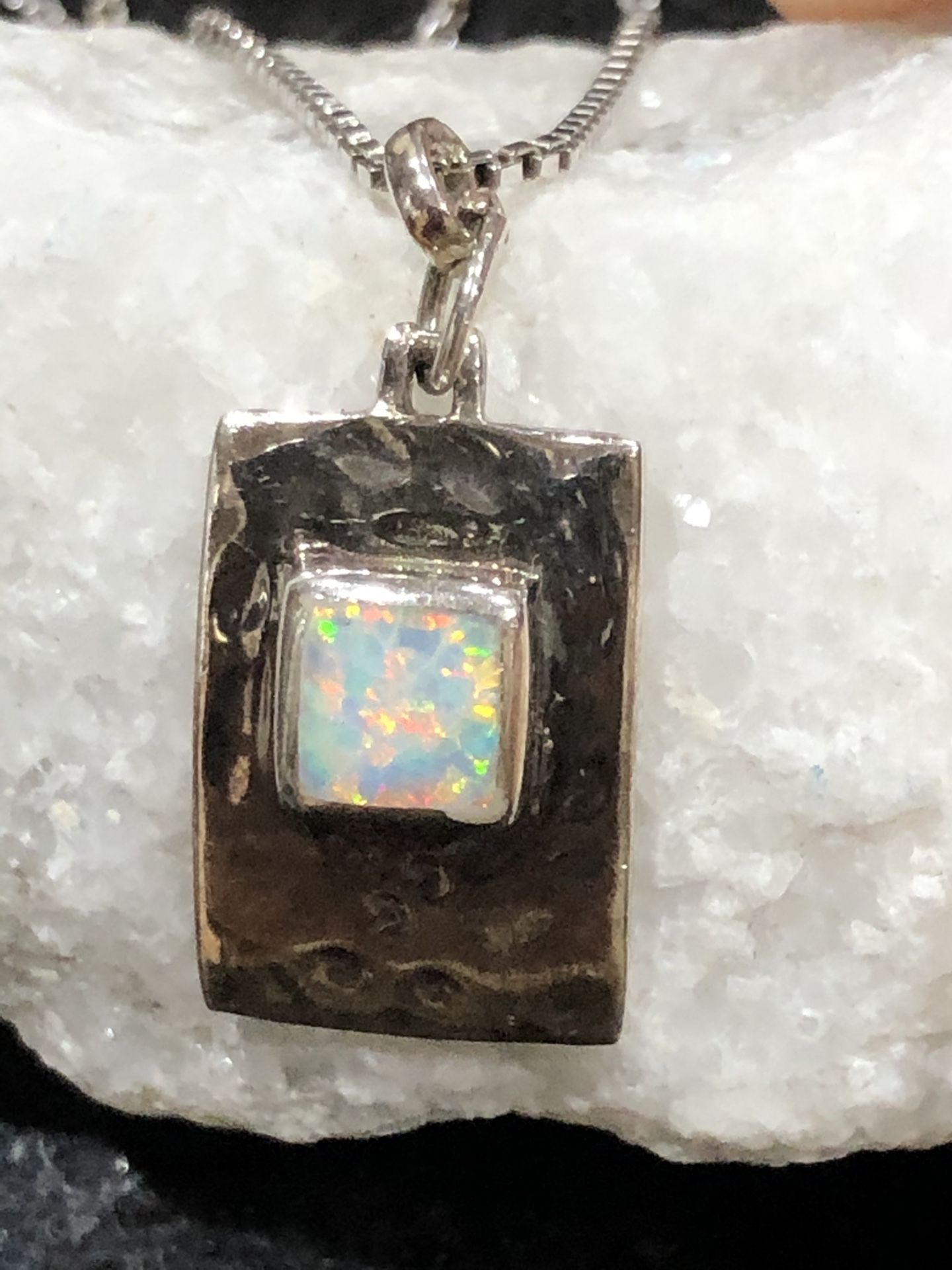 Pendant necklace sterling silver Opal on Hammered sterling silver 17”Chain