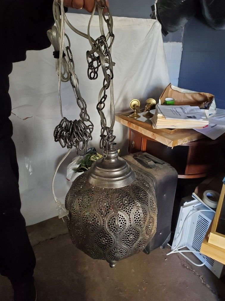 Silver boho style plug in lamp. Bulb included