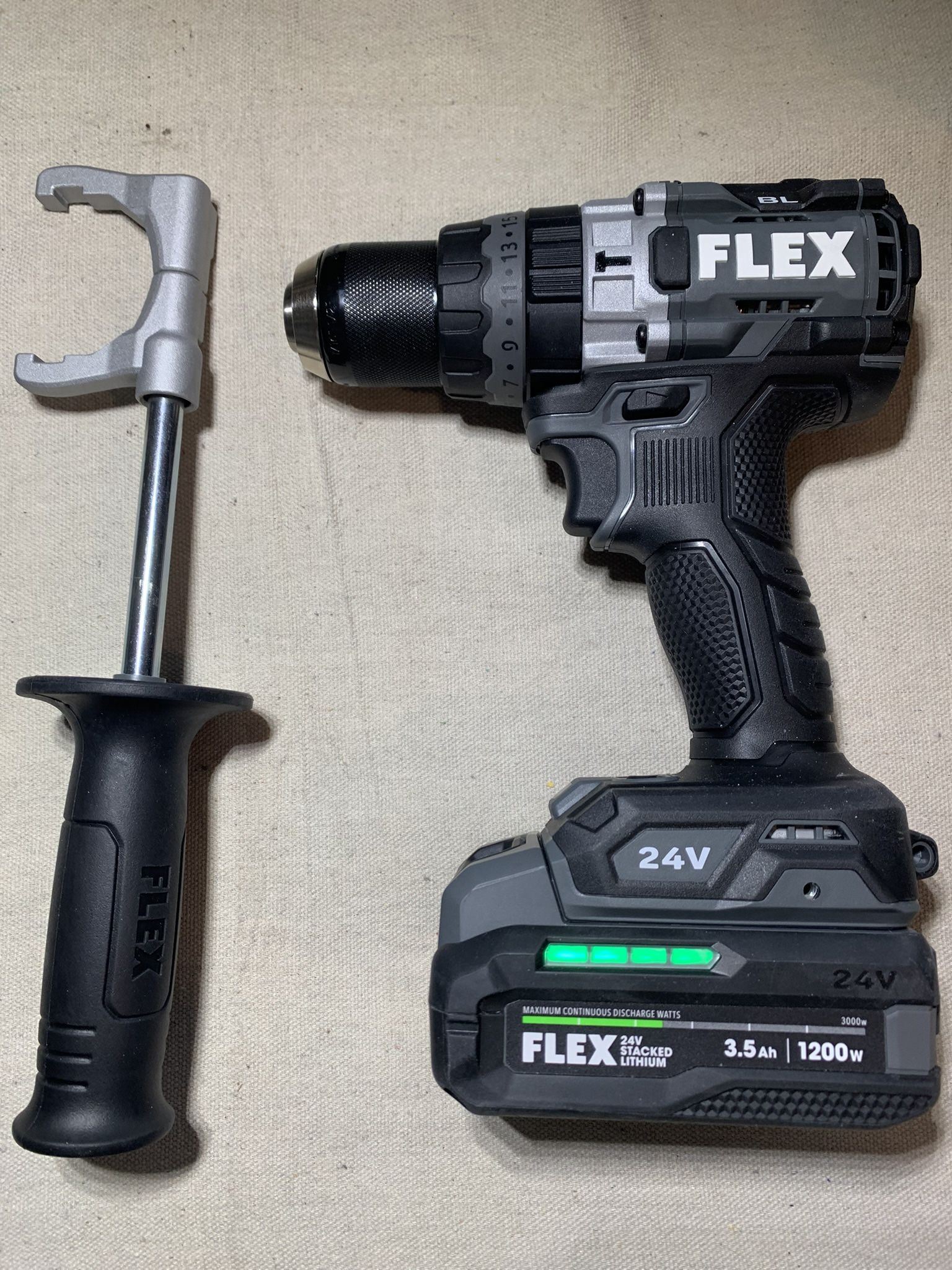 Flex hammer drill with turbo mode battery and charger
