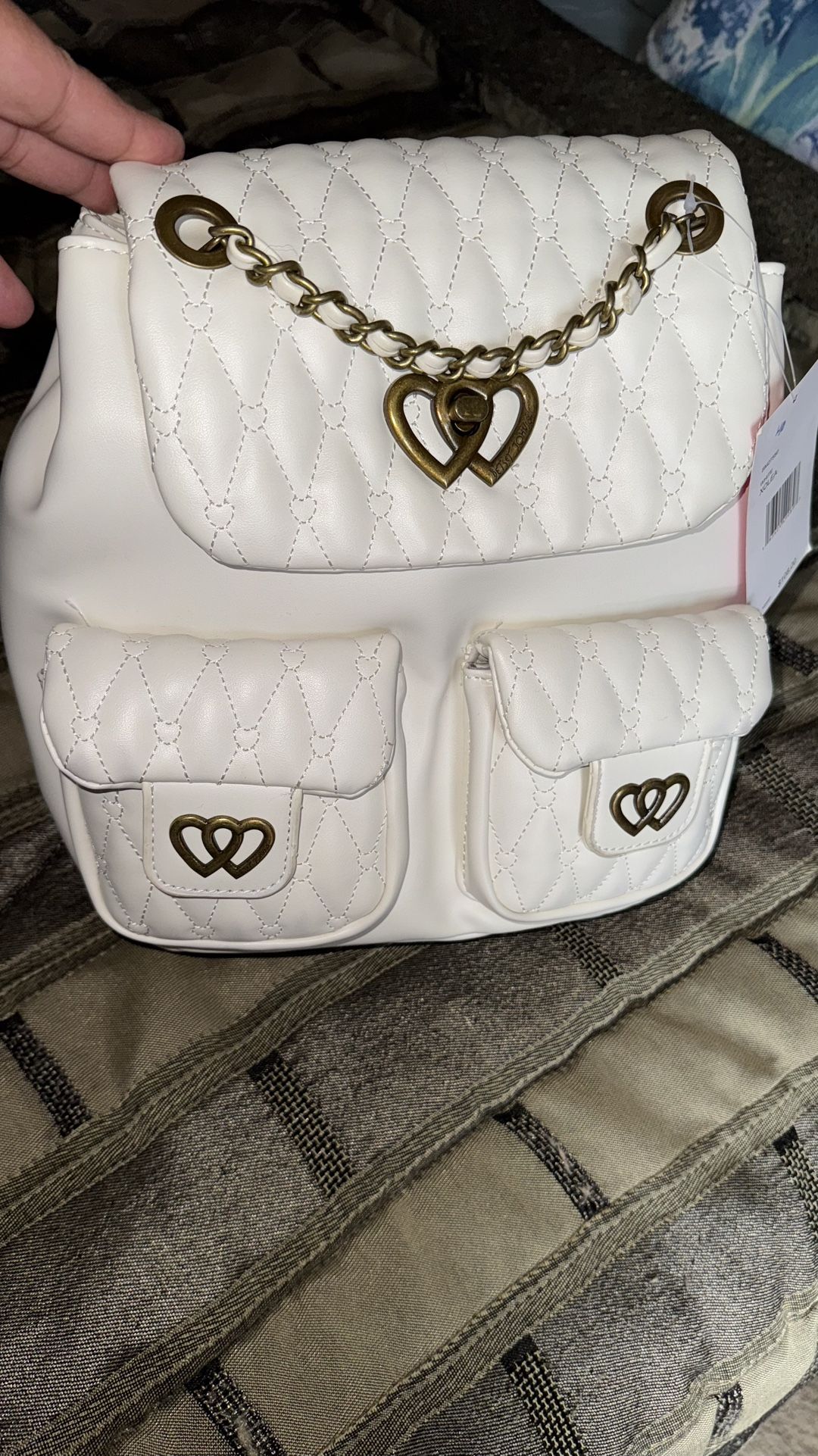 Great as Christmas gift for little girls, teens & young women. Never used women’s stylish backpack - still has the tags on Betty Johnson brand White color with golden colored chains