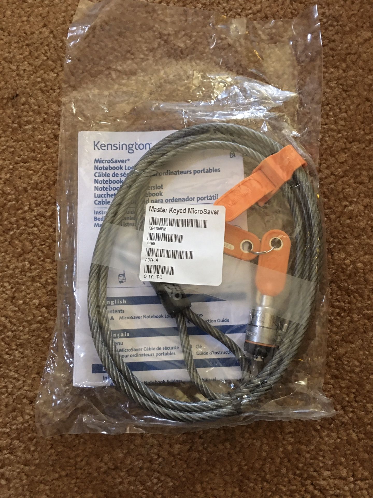 MicroSaver Notebook Lock by Kensington. Cable lock comes with 2 keys.