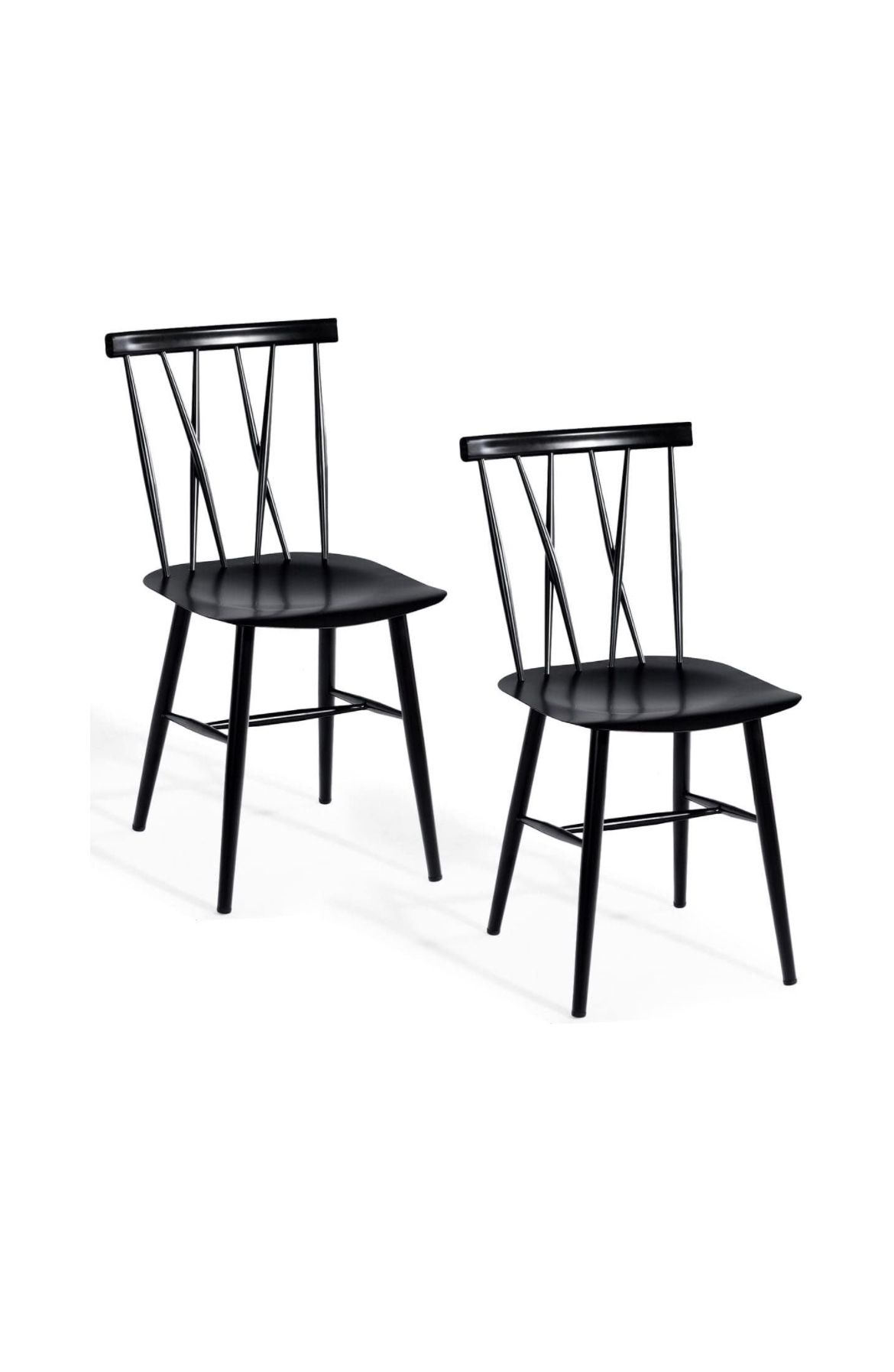 •2 Pcs Steel Chairs Dining Side Armless With High Cross Back Black •Color: black. Material Info: Steel. Seat Size: 16" x 17". Backrest Size: 13.5" x 15.5". Seat Height: 17.5". Net Weight: 27 lbs. Maximum weight capacity of each chair: 330 lbs. Package includes: 2 x Dining Chair. Material : Steel. Chair type : Dining Chairs. Assembly : Assembly Required. Chair back height : Standard. Color : Black. Number of pieces : 2-Piece. Product Size: 21.0 In. W X 32.5 In. H X 16.0 In •Product Size: 16" x 21" x 32.5" (W x D x H).