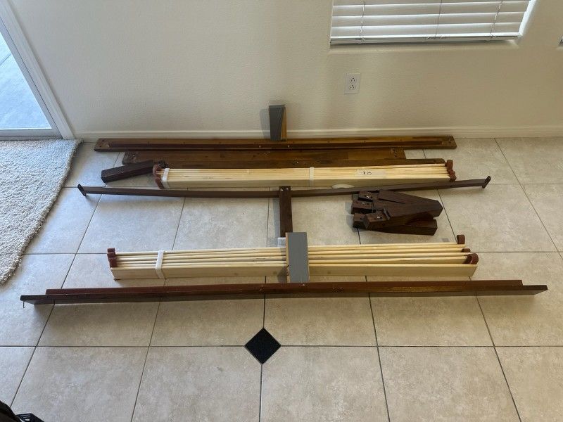 Queen bed frame Needs put together Complete set except missing the screws Good deal for $5 It's in the southwest by Robindale and Jones