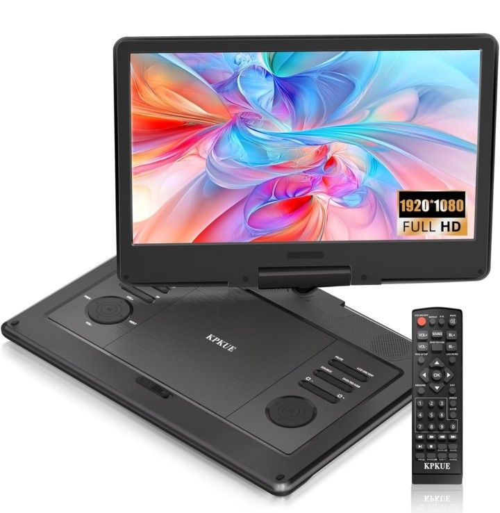 【FHD 1920*1080 IPS Screen & Easy Remote Control】 1920*1080 high resolution FHD IPS portable dvd player with screen brings wonderful visual experience,IPS wide viewing angle technology of dvd player portable provides you with a 178°larger field of view and enjoy stunning visual effects with bright colors. Making this DVD player perfect for kids and family entertainment better. Easy operate via buttons on DVD board or remote control. 【Support Multi Formats & Type-C/HDMI Ports & Anti-Shock】 KPKUE DVD player that plays all formats CD/DVD/DVD±R/CD-R(RW)/DVD±RW/SVCD-R(RW)/VCD/SVCD (Not support Blu-ray),USB(Max 16GB), SD Card(Max 32GB), such as VOB/AVI/MPEG, MP3/WMA/ACC, JPG/JPEG with Region-free.KPKUE portable dvd player has Anti-Shock function to effectively protect the disc reading process smoothly.Type-C/HDMI ports of this portable dvd players with large screen can connect with other divices to sync the screen for a larger viewing experience, such as projector/Xbox/Ps5/Camera. 【Bigger Swivel Screen & 2 Surround Speakers 】 KPKUE 15.6" portable DVD player with 13.3inch 1920*1080 FHD swivel IPS large screen. FullHD and low blue light screen pertect for eyes with long-time watching. KPKUE dvd player portable has 270° rotation and 180°flip feature enjoying extreme viewing experience and easy watching comfortably.This portable tv for camping has two stereo speakers and 1 headphone jack meets your needing for home/camping/car/Traveling sharing or enjoy it by yourself. 【Last Memory Function & 2 Power Supplier Methods】 KPKUE car dvd player for kids with last memory function, the movie resumes from where you last stopped without worrying about restarting from scratch. There are 2 power supplier methods for portable dvd player for kids, One is built-in 4000mAh high-capacity rechargeable batteries, you can watch movies anytime and anywhere, Approximately can play about 5 hours. Two is AC adapter cable power directly from home.