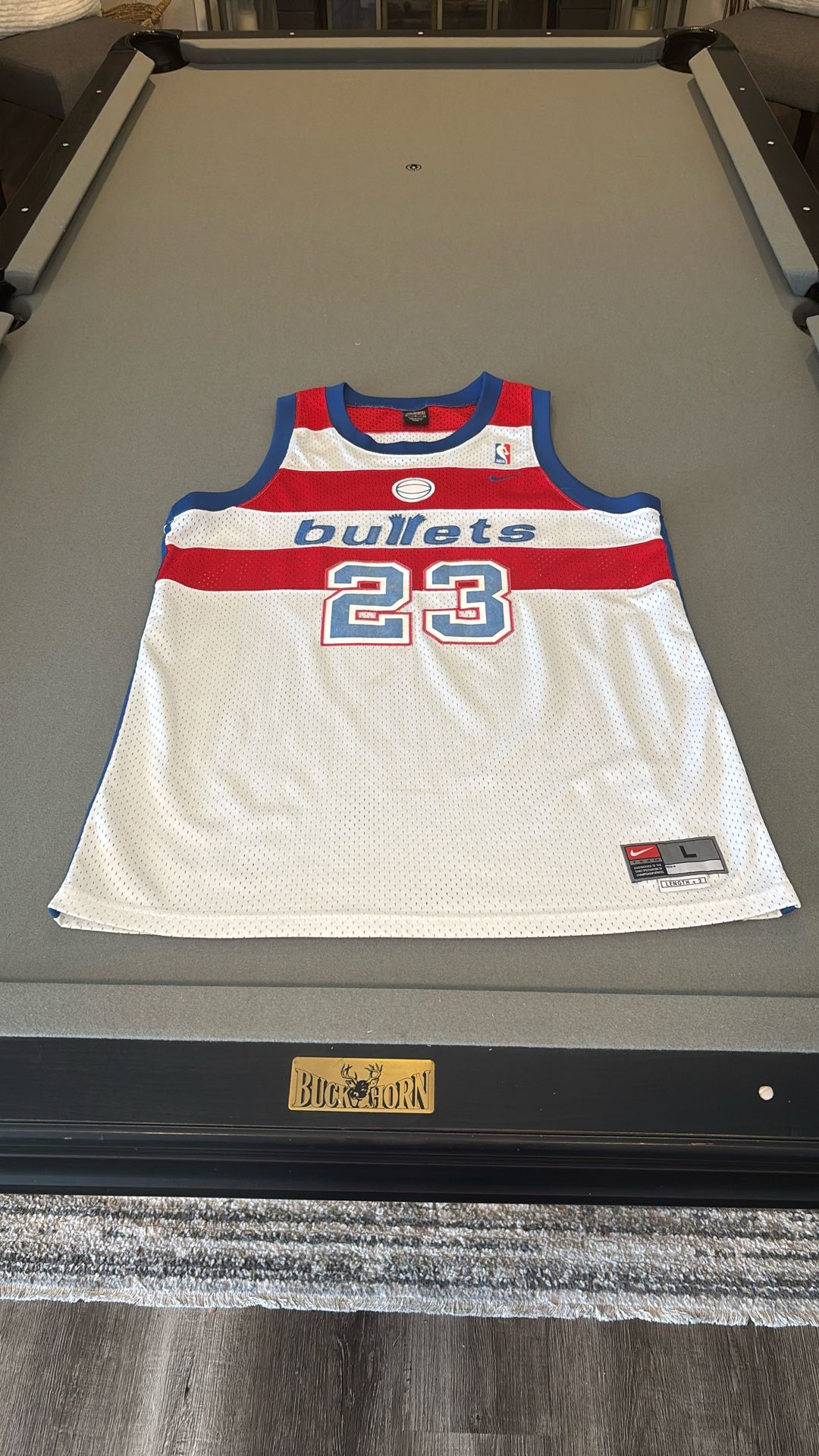 RARE. This is an authentic throwback Washington Wizards/Bullets Michael Jordan Jersey. Nice colors. Still in great condition. Has been in my closet for a LONG time. Not a cheap imitation. Size L