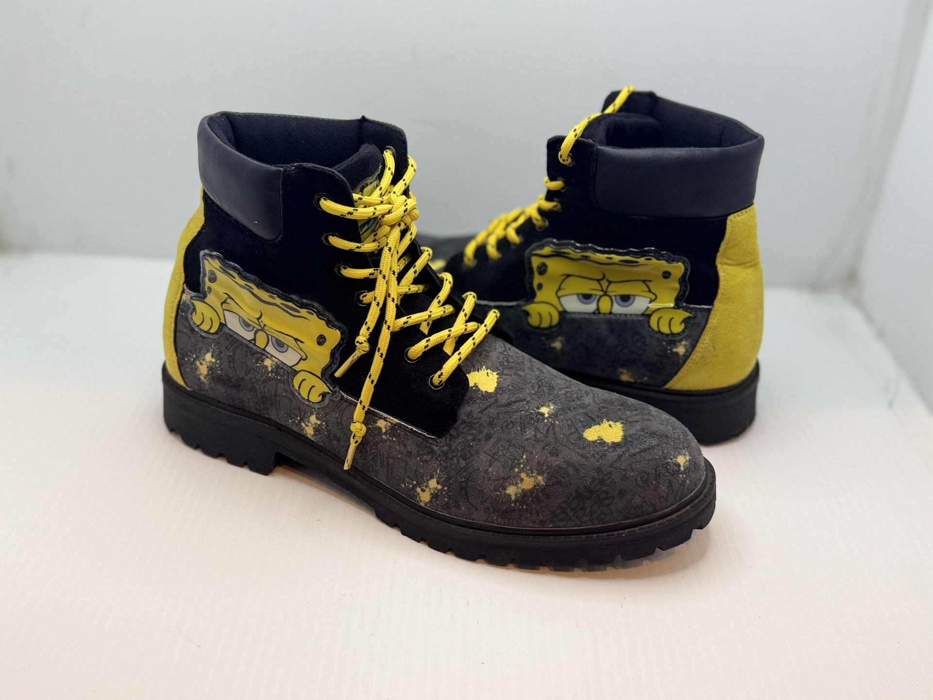 Spongebob Squarepants Paint Splatter Boots Black & Yellow Men's Size 11