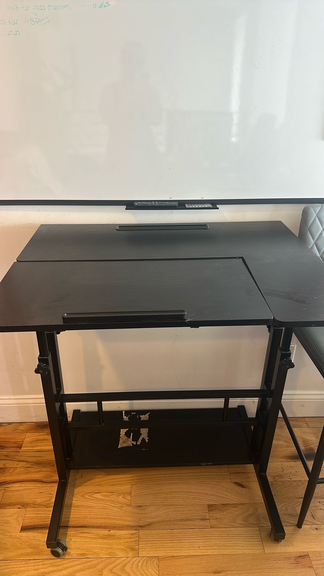 Great computer desk Cardboard got stuck at the bottom of it from a box sitting on it - just needs to be scrapped off. Not damage.