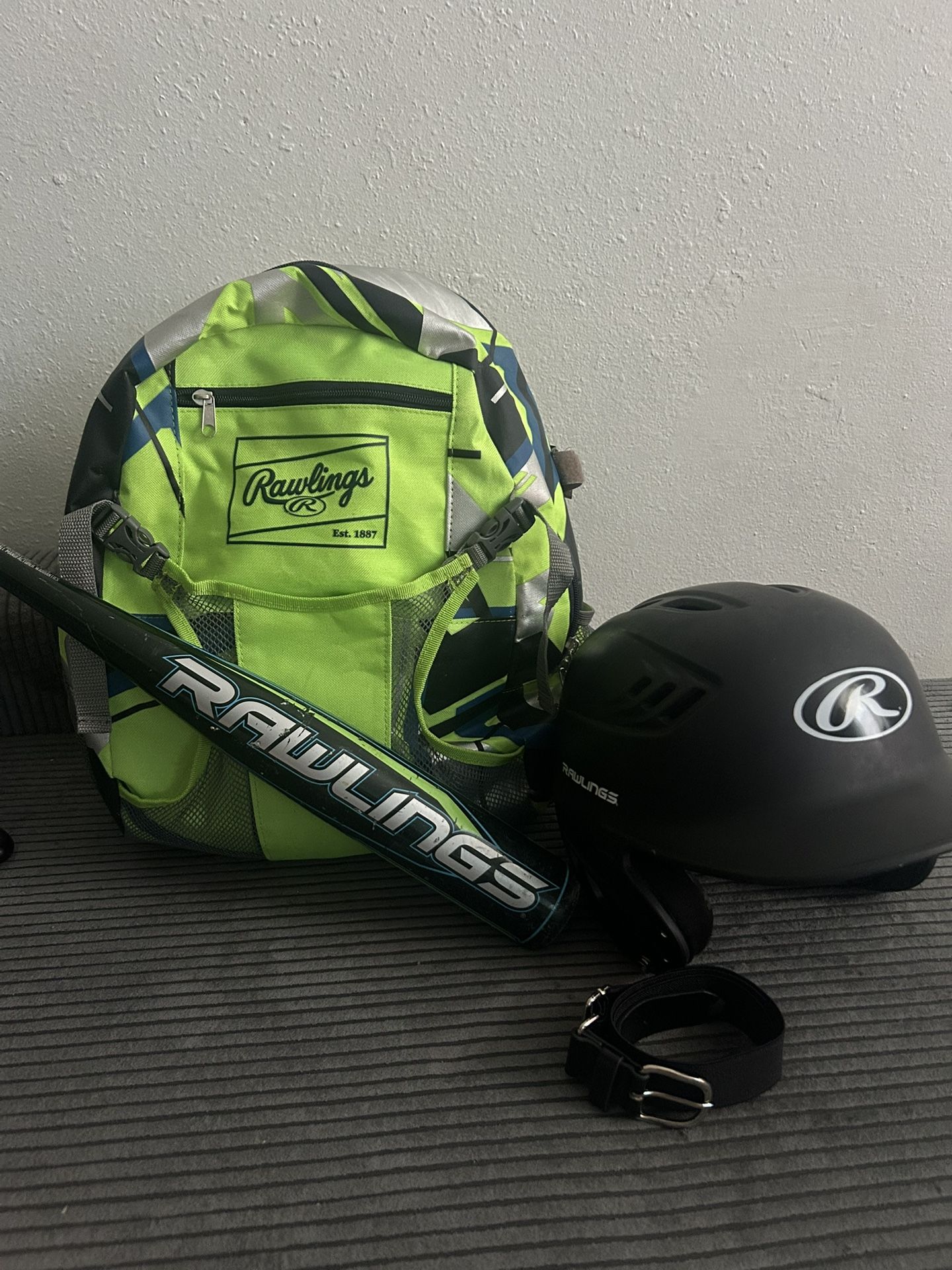 selling all 3 together : measurements for the bat are listed in the pictures these items are not brand new they are gently used. They we used one season. the backpack is in great condition , it's been washed. all the zippers and clips are working and not broken , it has a hook so you can hang it , straps for you bat and is very spacious inside . The inside is clean and it's not dirty or beat up . the bat has been used ( the photos show the usage ) the grip is in great condition and has never needed to be replaced the helmet is adult side , and clean , the edging st the bottom has peeled a tad , but the pads are in great condition and nothing is falling apart no damages , or dents on the helmet and i'm including a black baseball belt ( youth ) selling all 4 together for $35 selling all 3 for