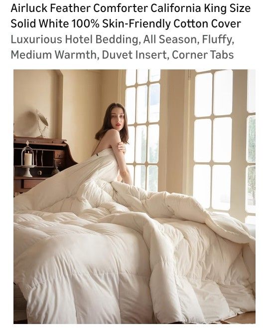Airluck Feather Down Comforter King Size,Solid White Heavyweight Duvet Cover,Luxurious Hotel Bedding Comforters with 100% Skin-Friendly Cotton Cover.