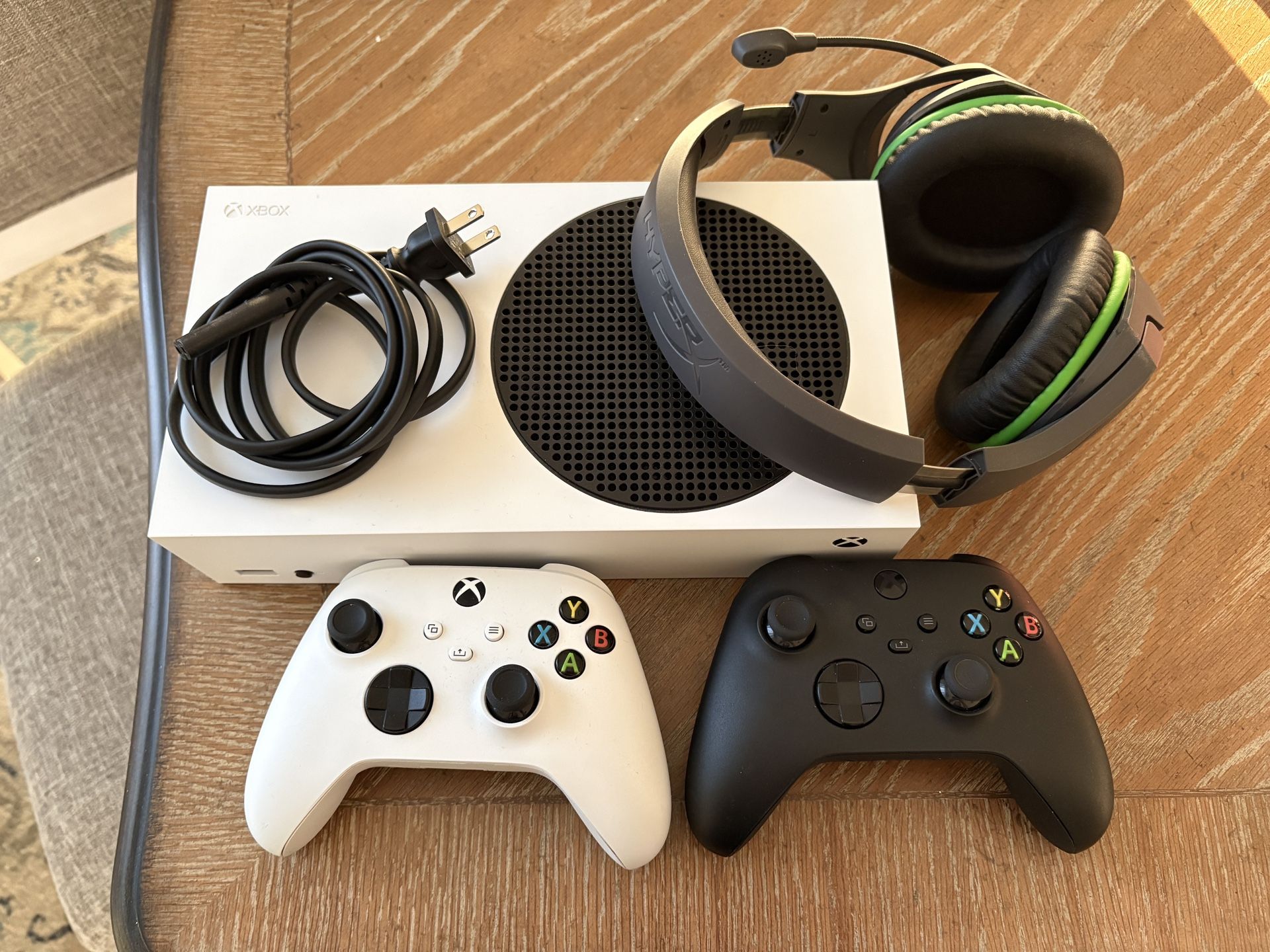 Xbox S 512GB Digital console in white with matching white controller and an extra black Xbox brand controller, power adapter, and headset. Pickup in SW PSL, cash/zelle only.