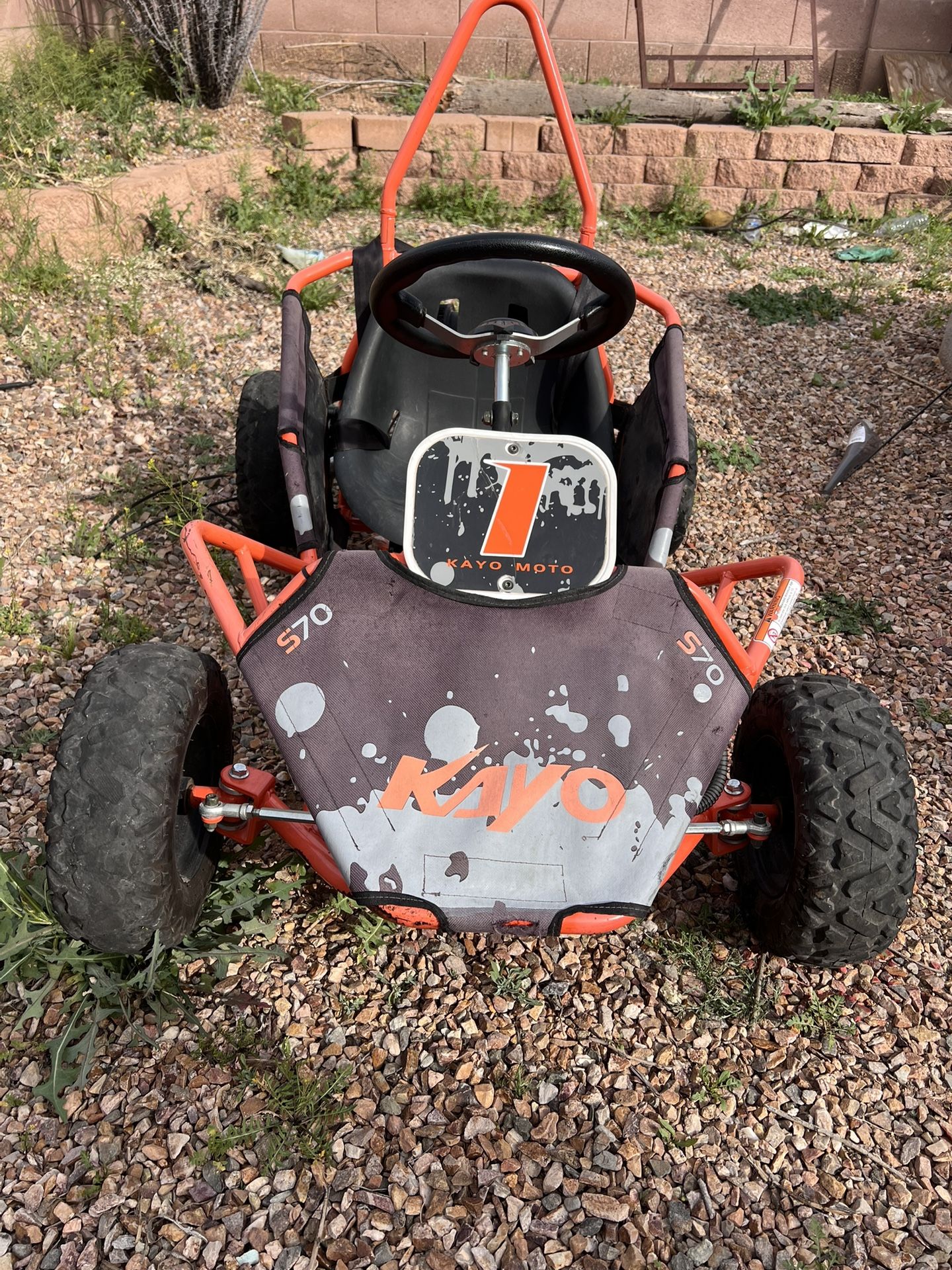 I’m trying to get this toy I have to many I need this gone ASSP it’s Kayo S70 Go kart it’s 79cc oil changed ones it has upgraded carb clutch and the exhaust that’s all I have done to it  It’s in good condition used like new I have all the OEM parts that came with it