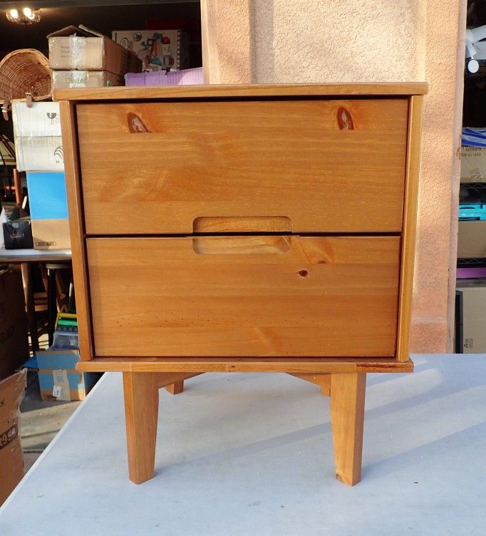 New - we only have 1 - Walker Edison Mid Century Modern Grooved Handle Wood 2-Drawer Nightstand Side Table Bedroom Storage Drawer and Shelf Bedside End Table, 24 Inch, Caramel - STYLISH STORAGE SOLUTION – Made of solid pine wood with a beautiful stained finish, this nightstand adds a touch of elegance to any bedroom decor. - Brand Walker Edison - Product Dimensions 14"D x 22"W x 23"H - Item Weight 23 Pounds - Maximum Weight Recommendation 50 Pounds - Frame Material Wood