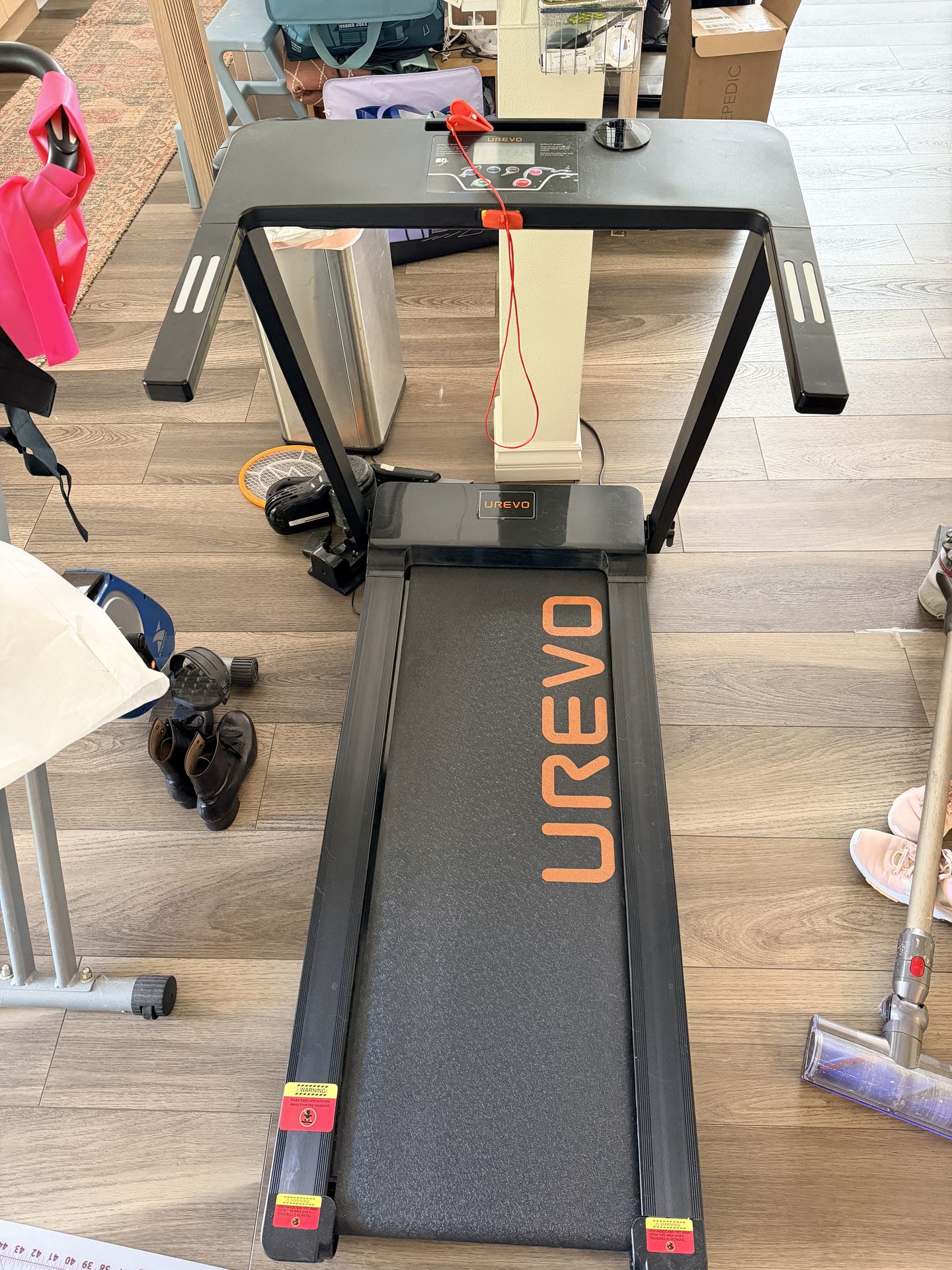 Gently used treadmill 2.5hp 16.5” wide tread belt 41 3/4” long tread The top part can fold down so you can store it under the bed or stand it up. Good working condition