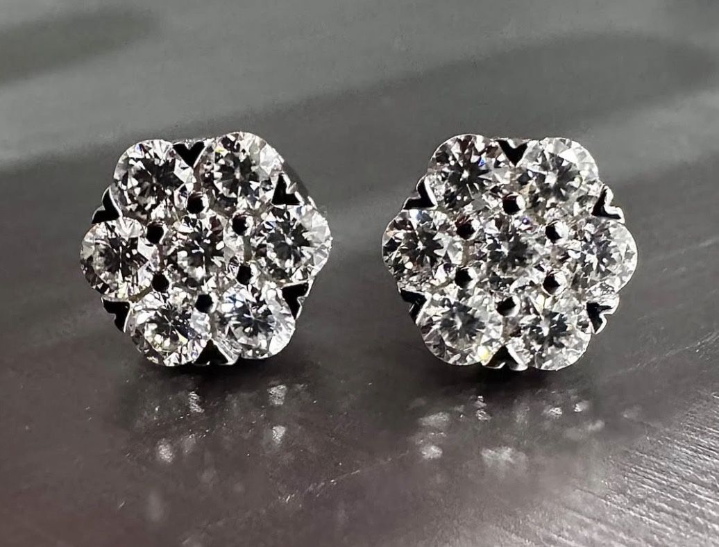 Moissanite cluster earrings set in silver 925. Absolute stunning with lots of fire. Total weight 1.4 carats. Comes with jewelry box. D color, VVS1, excellent cut. Will pass diamond test. Looks even better in person. $65.00 Pick up only. Located in Elk Grove.