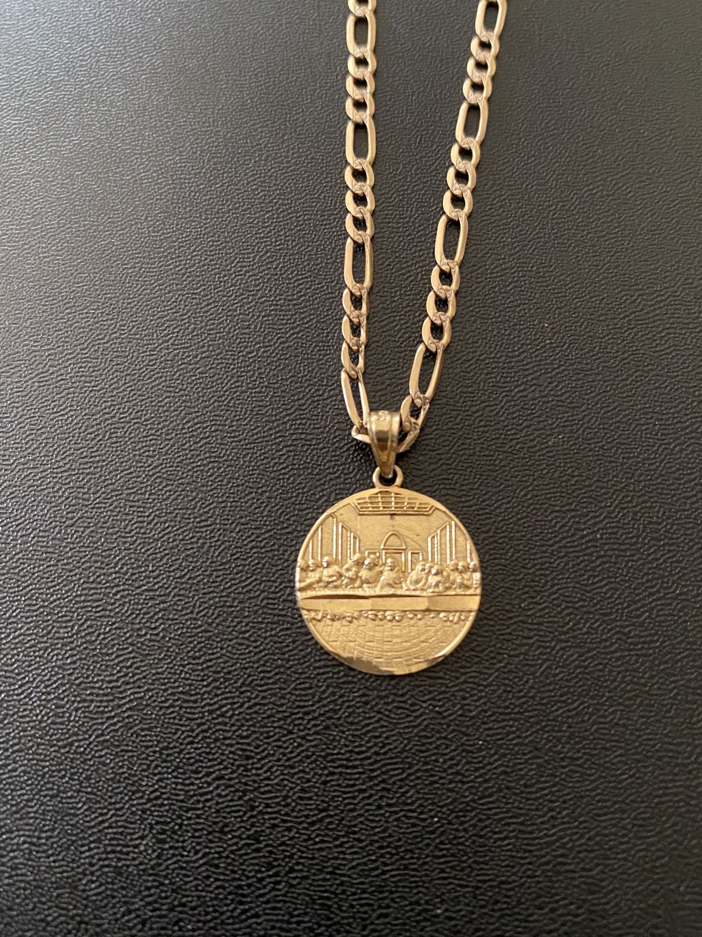 Last supper pendent 10k about the size of a penny not sure how much it weighs willing to negotiate real gold welcome to test it
