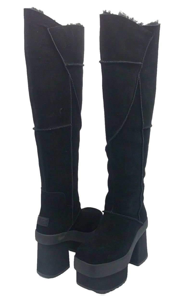 UGG New Heights Platform Xtra over-the-knee boot in black suede.