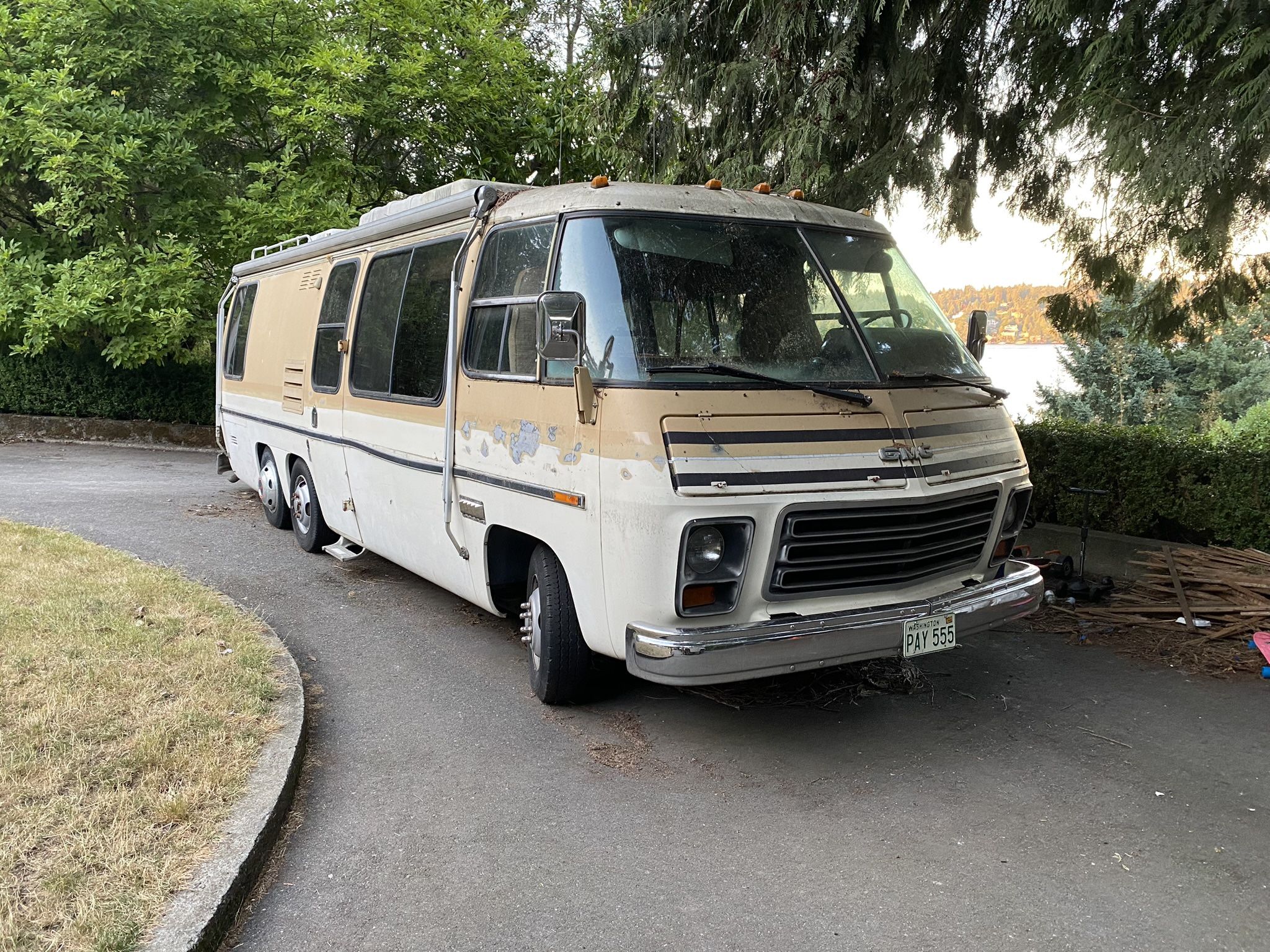 This motorhome needs some love to bring it back to its former glory, but is in good shape. Engine will not start, it was driven here, but won’t start any more. Likely the engine is bad and needs to be replaced. It will need to be towed, luckily it can be accessed pretty easily. No working on it here.