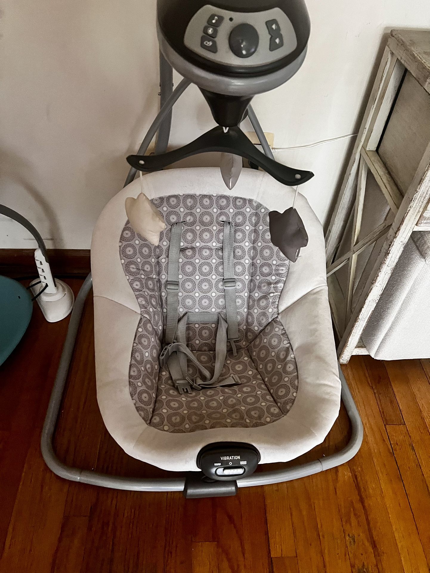 Adjustable swing speeds, Music, Nature sounds, Toy bar, Vibration, Washable cover