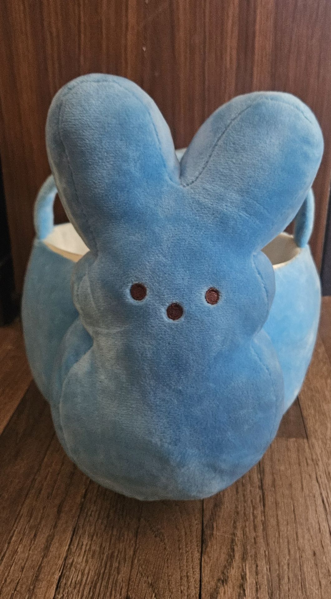 EASTER PEEPS BLUE BUNNY RABBIT PLUSH CANDY BASKET/ PAIL PRE-OWNED IN GOOD CONDITION