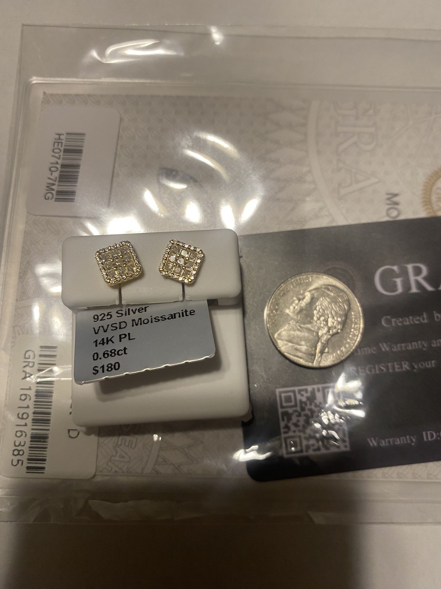 Beautiful Moissanite Earings Screw ons 925 14k gold plated Vvsd moissanite 0.68ct Retail $180