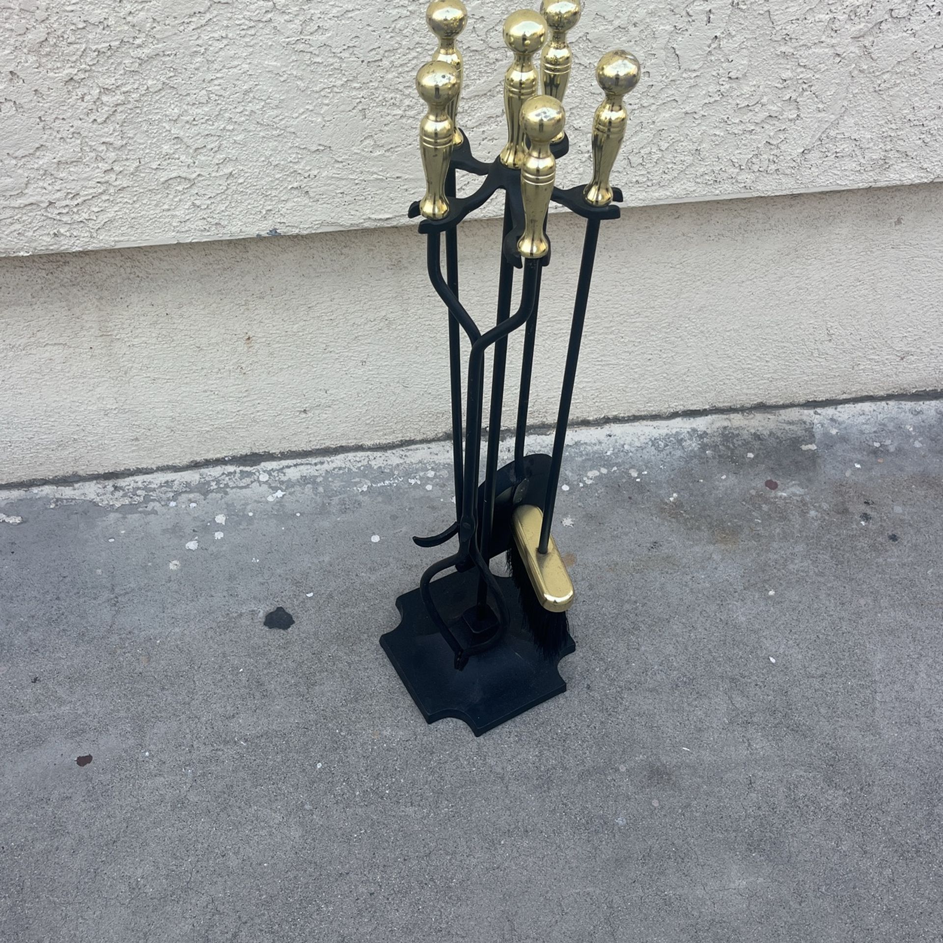 Vintage Short Black/Gold Metal 6Piece (5x tools) Fireplace