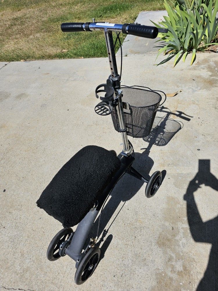 Selling my like new knee scooter that I only used for a couple months while recovering from a broken ankle. This knee scooter is solid metal, the brakes work great on it, and comes with a removable storage basket, an extra pad, and an extra cup holder. Retails for $150, but selling for only $120 as it's in great condition.