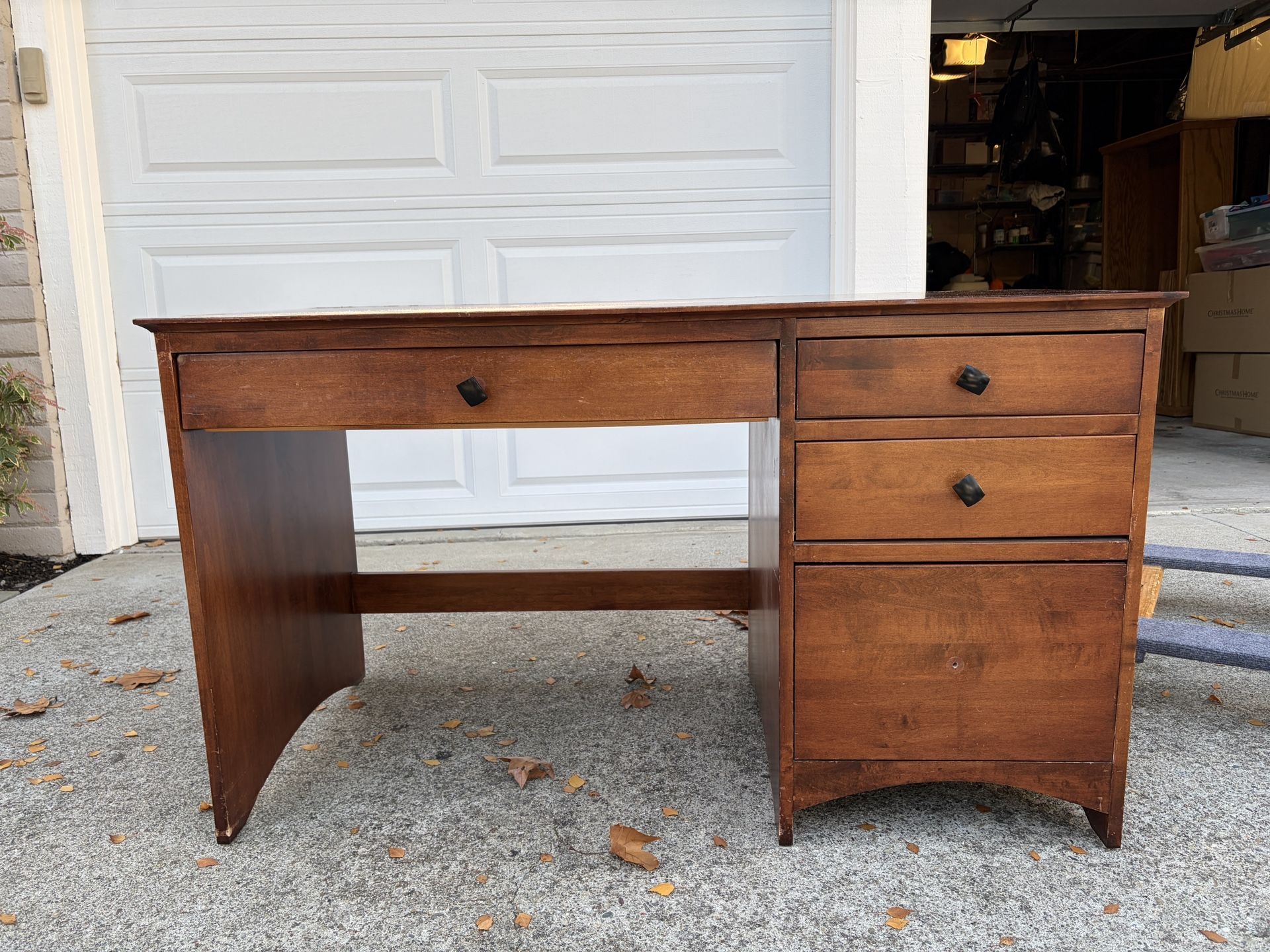 This desk is solid cherry. I have a dresser and nightstand to match. The drawer pulls need some work.